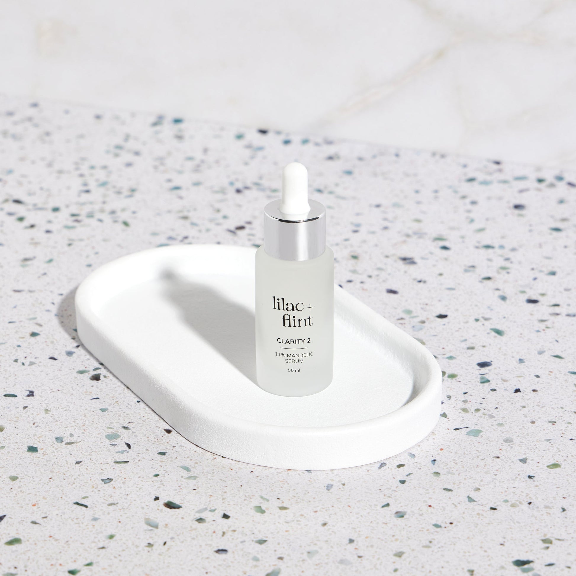 Clear breakouts, fade dark spots, and support a balanced skin barrier with this gentle daily exfoliating serum. Clarity Serums are powered by L-Mandelic Acid — a slow-penetrating AHA ideal for sensitive, acne-prone skin. It helps unclog pores, smooth texture, and brighten post-breakout marks without causing dryness or irritation. Hydrating ingredients and botanical extracts soothe and strengthen skin over time.